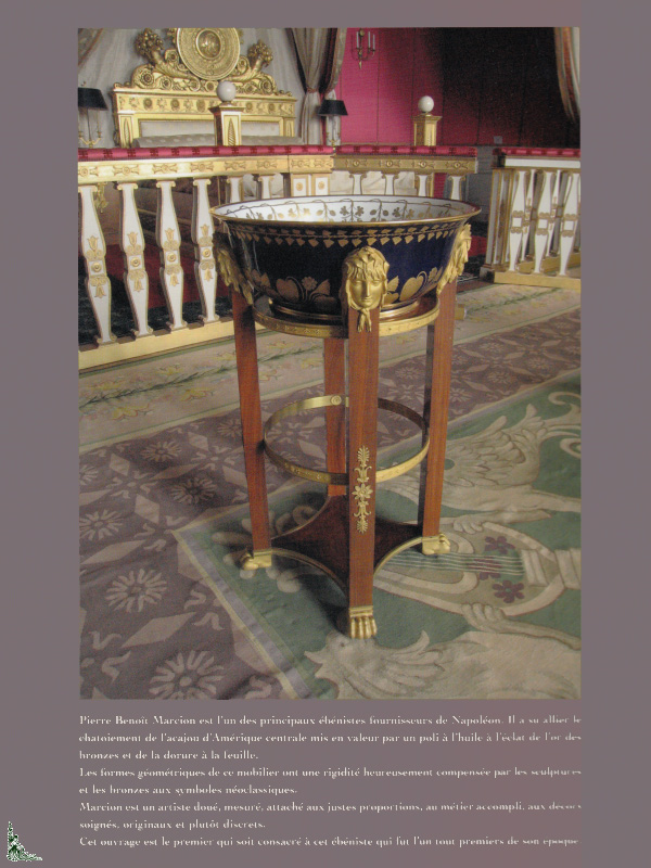 This hardcover book with 240 color pages with 350 colour and B.W pictures presents Pierre-Benoît Marcion (1769 - 1840) one of Napoleon's main cabinetmakers and suppliers.